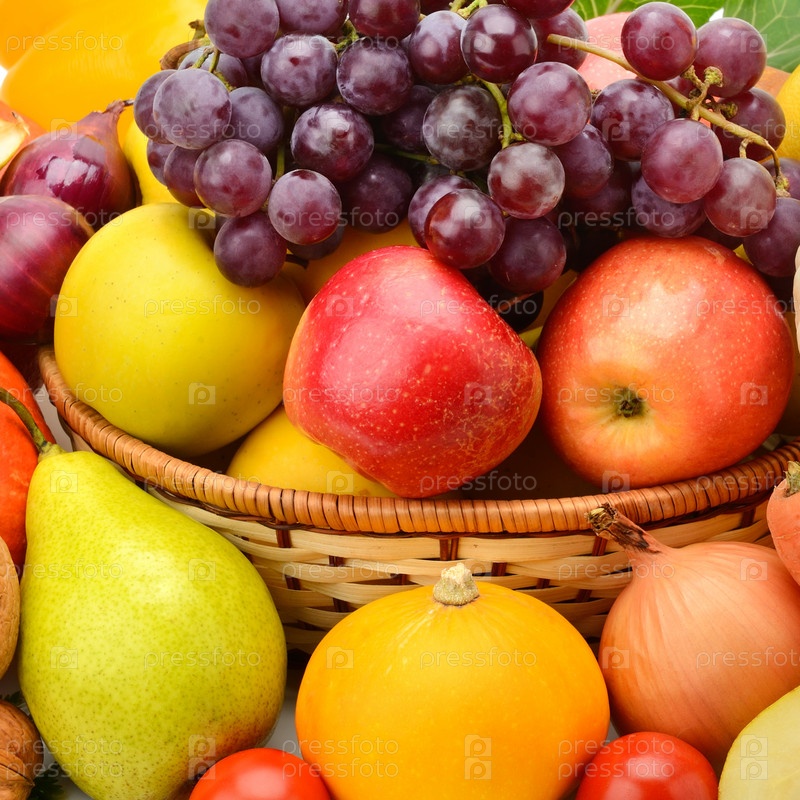 Яркий фон фруктов и овощей