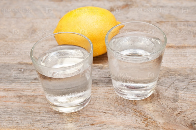 Рюмки с водкой и лимон