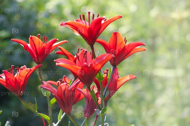 Красные лилии в саду