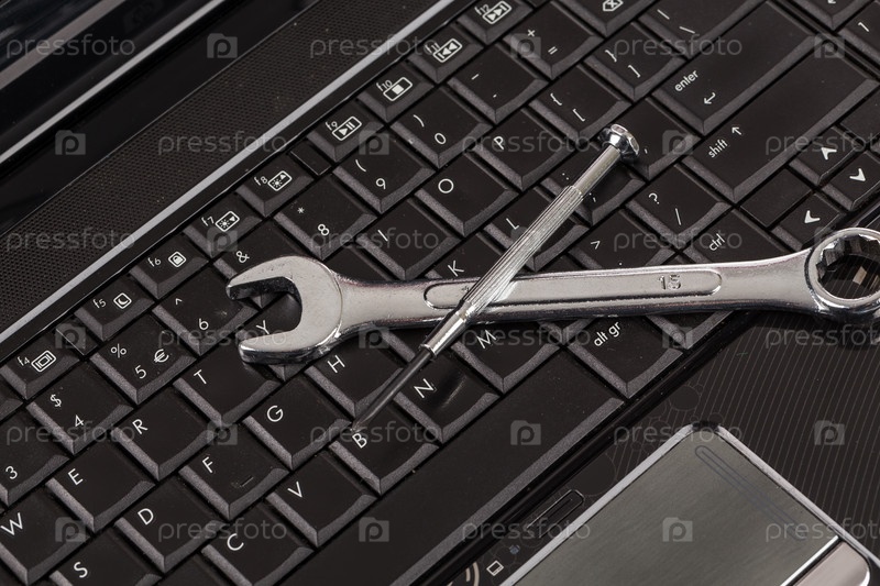 Гаечный ключ на ноутбуке