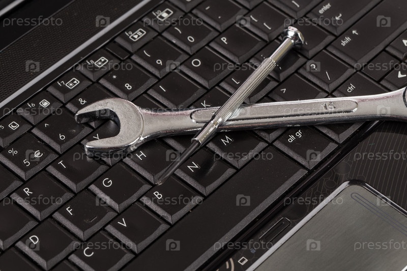 Гаечный ключ на ноутбуке