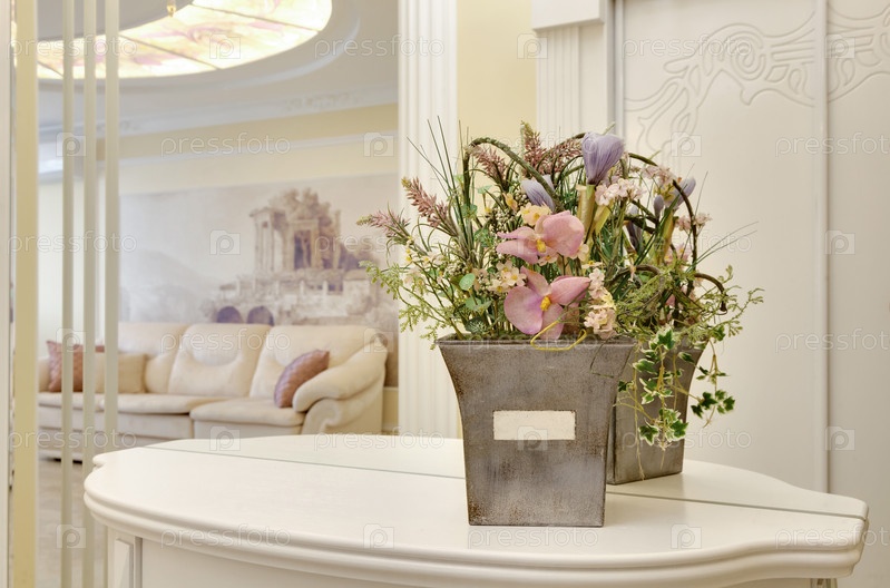 Цветы в горшке на столике