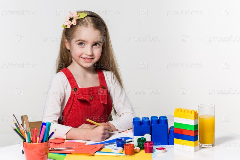 Милая маленькая девочка рисует