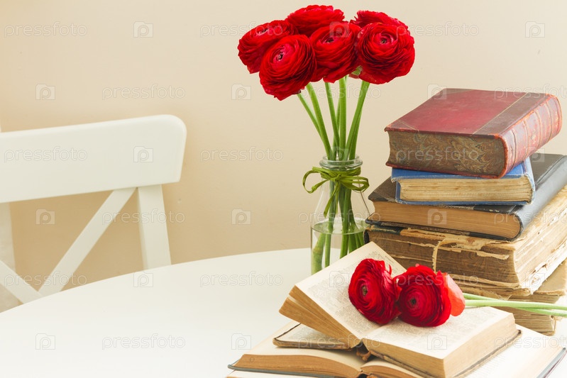 Старые книги и цветы