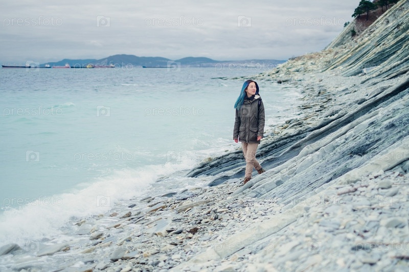 Девушка прогуливается по берегу