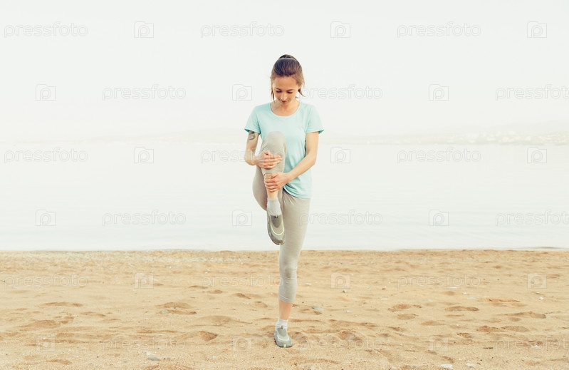 Девушка занимается растяжкой на природе