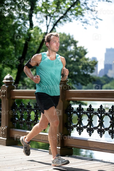 БегунМанхэттене в центральном парке в летнее время