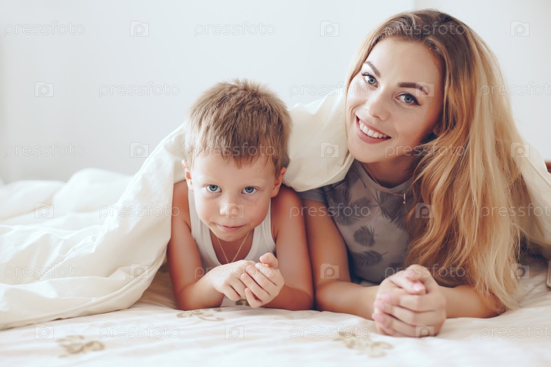 Мать с сыном на кровати