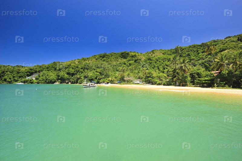 Красивый тропический пляж с зеленой водой