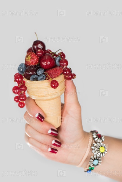 Свежие ягоды в вафельном стаканчике