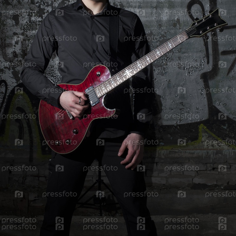С гитарой на фоне граффити