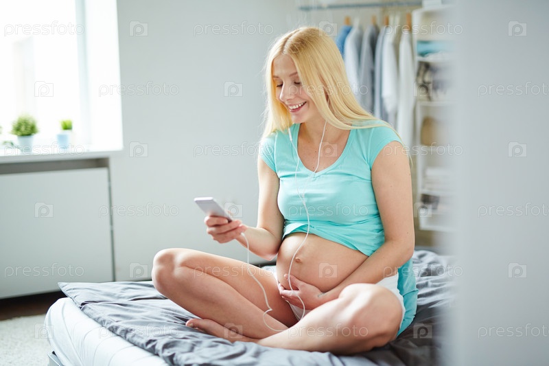 Беременная женщина слушает музыку