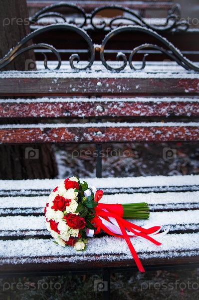 Свадебный букет на скамейке