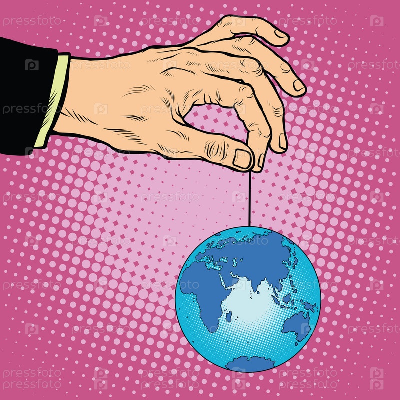 Планета Земля в руке на веревке