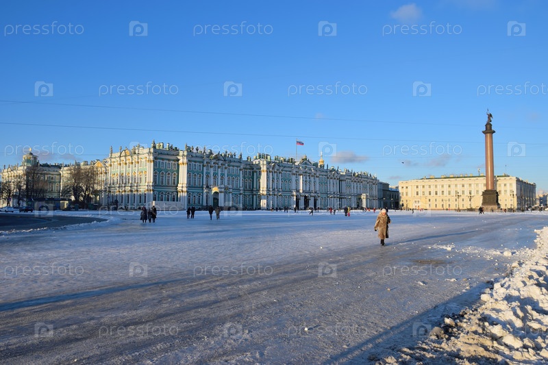 Снег на Дворцовой площади в Солнечный день