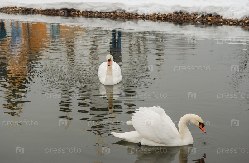 Лебеди в пруду