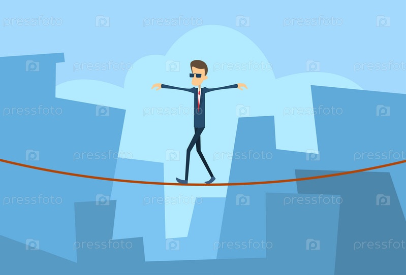 Бизнесмен идет по канату