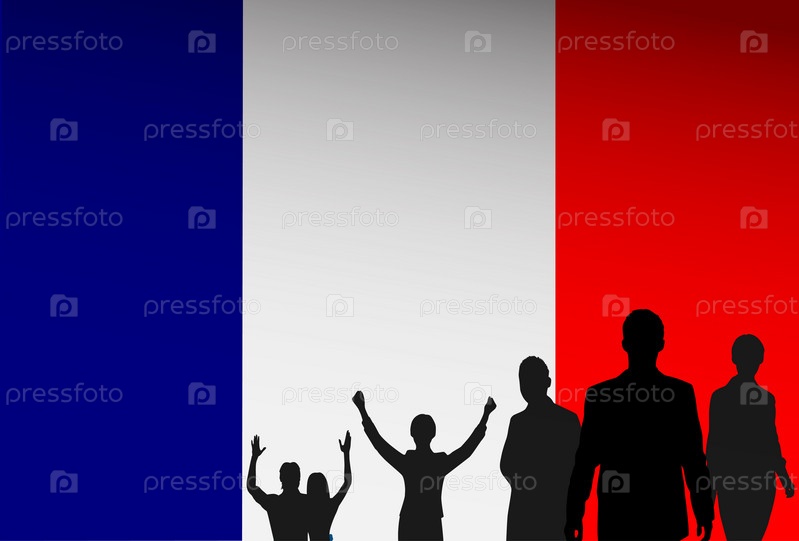 Силуэты людей на фоне флага Франции