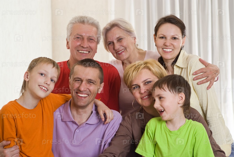 Портрет счастливой семьи из семи человек