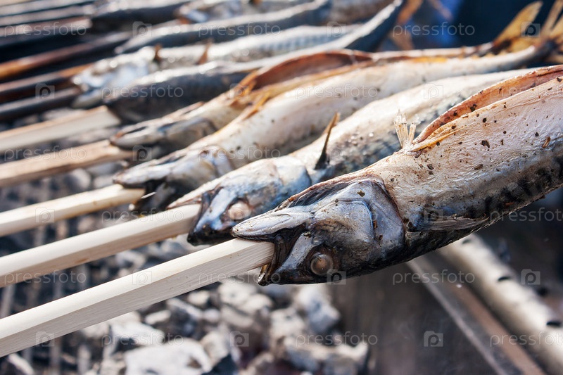 Приготовление рыбы на углях