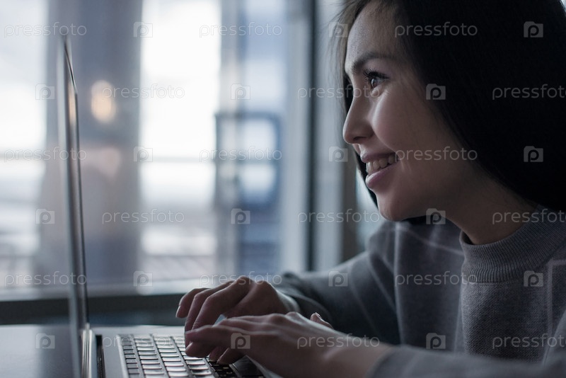 Девушка за ноутбуком