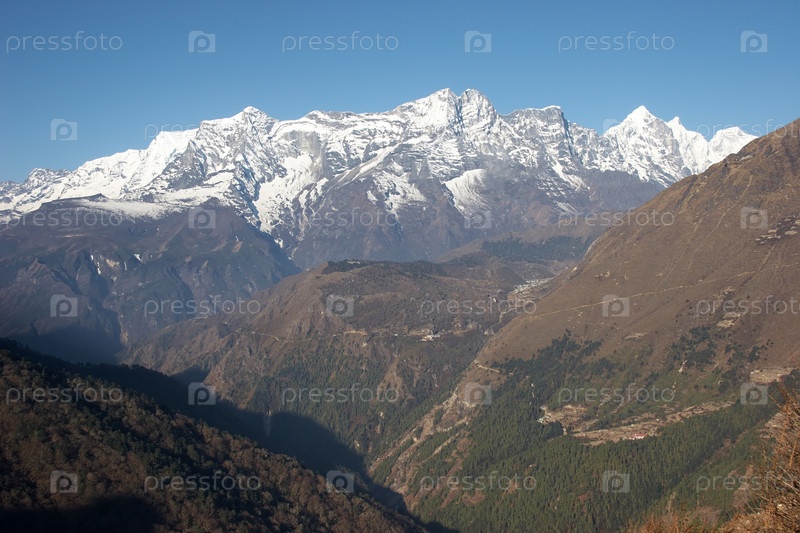 Вид из Тенгбоче в направлении Базара Намче. поход на Эверест, Гималаи, Непал
