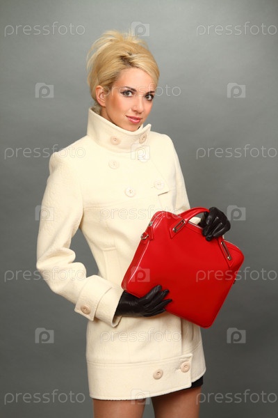 Красивая блондинка на сером фоне