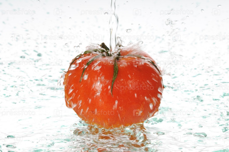 На спелом красном помидоре для воды