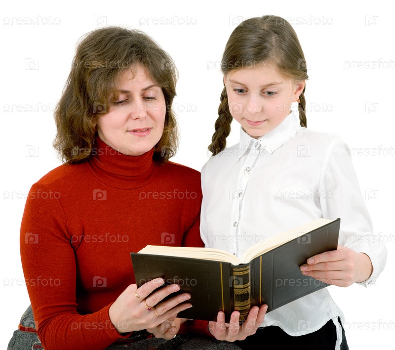 Женщина и девочка читают коричневую книгу обложки