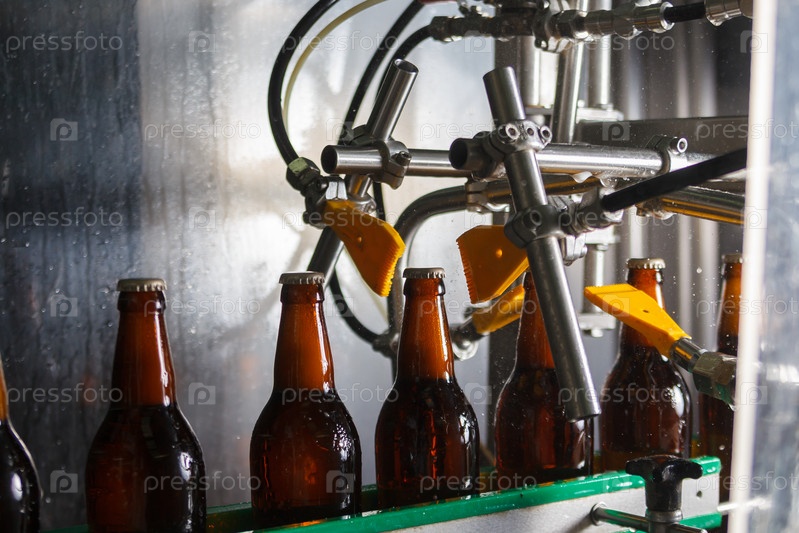 Пивные бутылки на ленточном конвейере