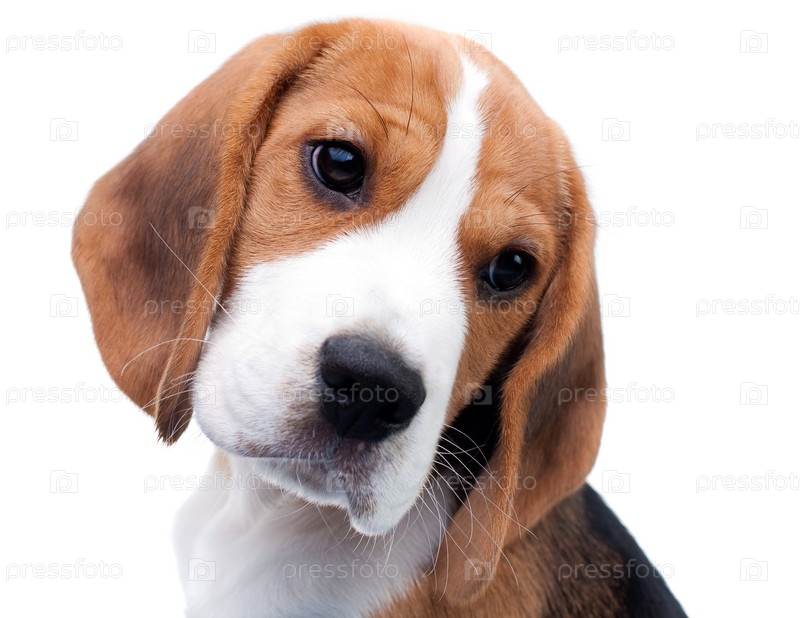 Милая собака, щенк Бигл с любопытным взглядом