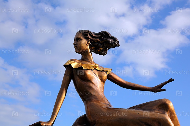 Бронзовая девушка на фоне неба