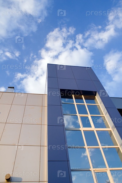 Современный офисный фасад на фоне голубого неба