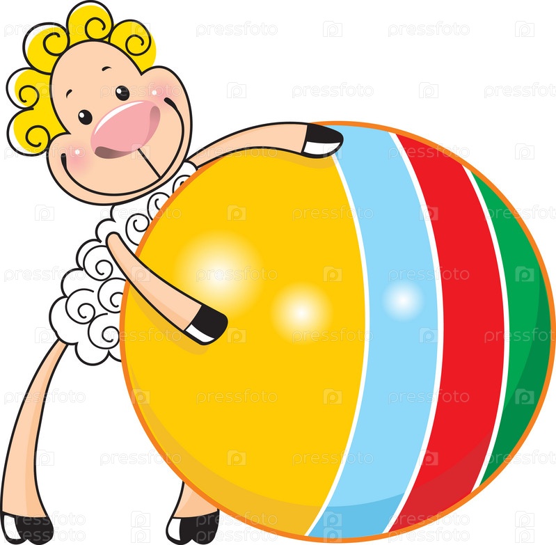 Симпатичная овца с резиновым мячом, иллюстрация