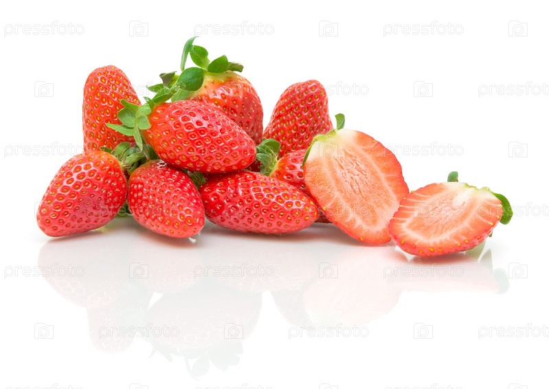 Спелые ягоды клубники на белом фоне