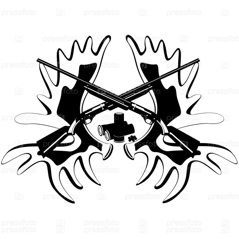 Рога лося, два ружья и патроны