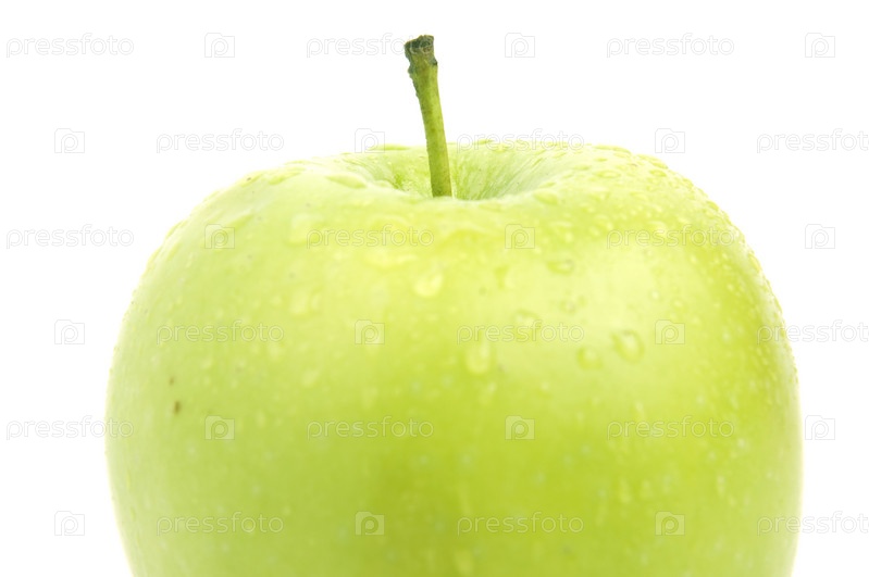 Верхняя половина зеленого яблока на белом фоне