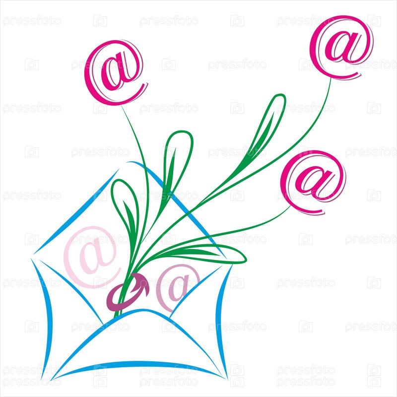 Концепция электронной почты с цветами из знака собака