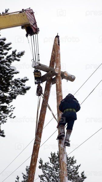 Электрик работает на столбе