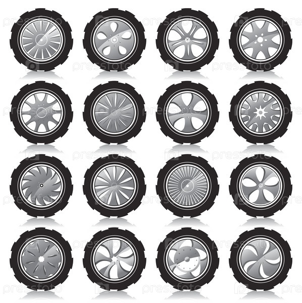 Набор иконок в форме автомобильных шин с дисками