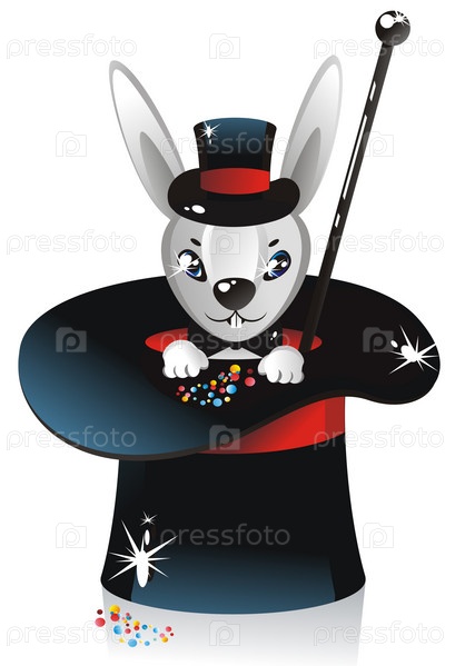 Белый кролик-иллюзионист в шляпе