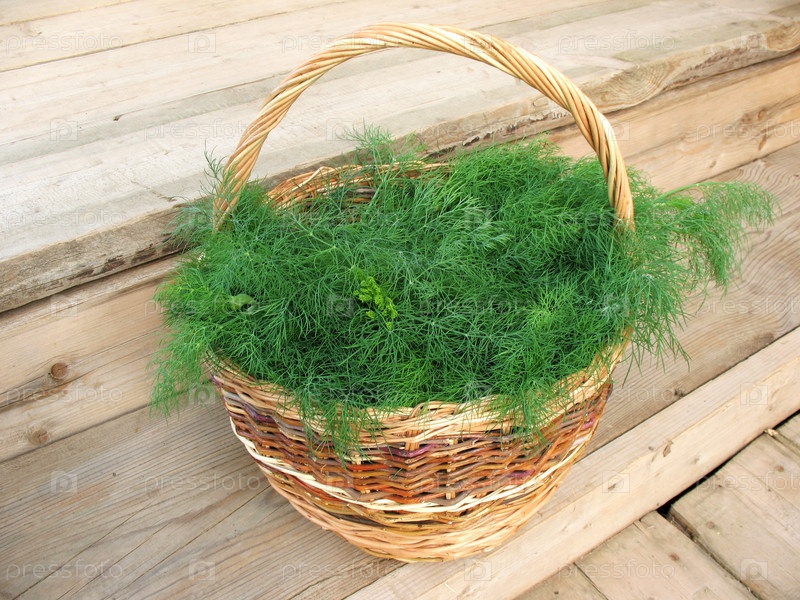 Срубленный ароматический уксус, anethum graveolens, в плетеной корзине