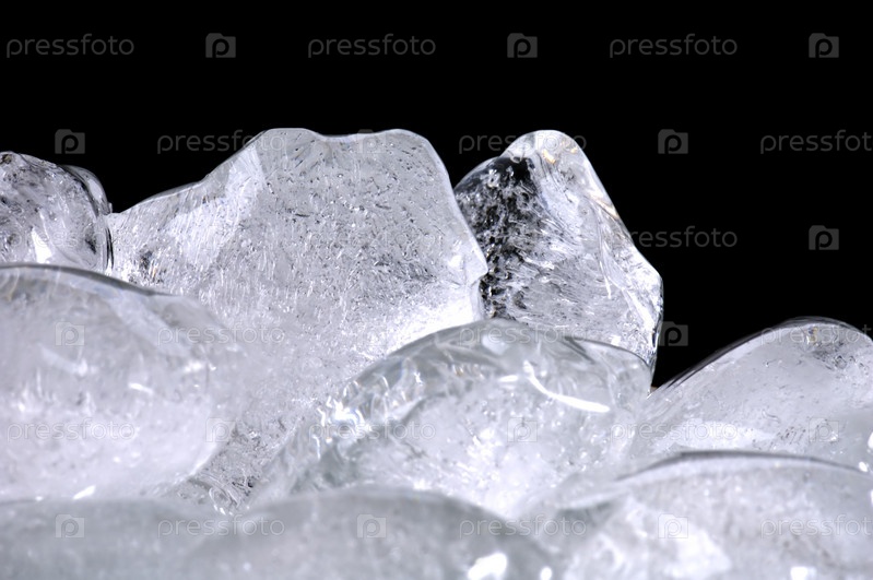 Объект на черном - кубики льда в стекле
