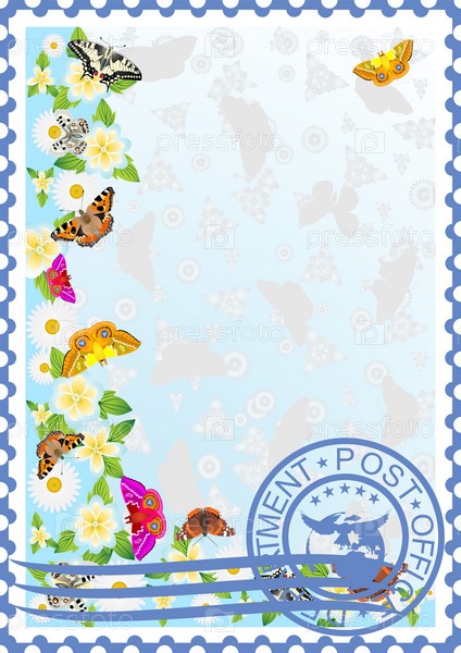 Почтовая марка. Бабочки и цветы