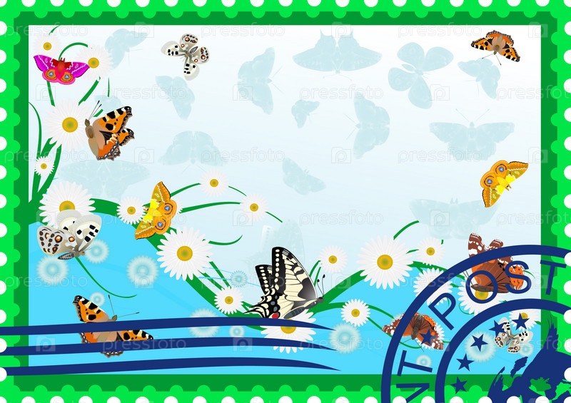 Почтовая марка. Бабочки и ромашки