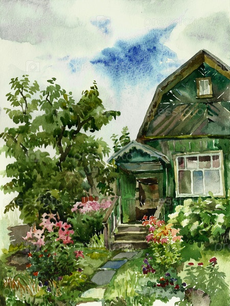 Летний домик, акварель