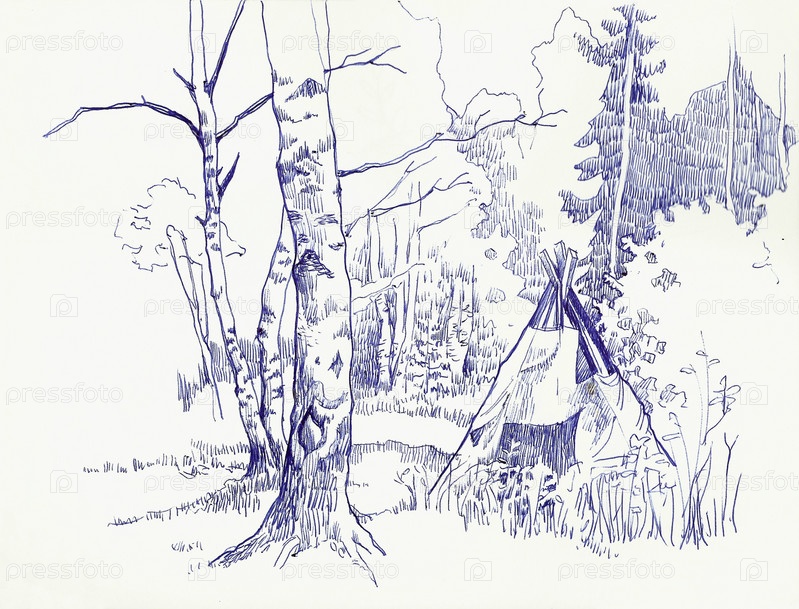 Палатка в лесу, графика