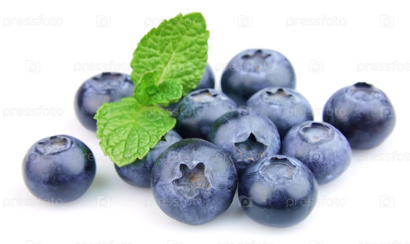 Черника с листьями на белом фоне
