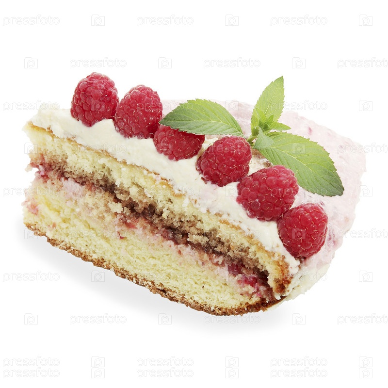 Бисквит с малиной на белом фоне