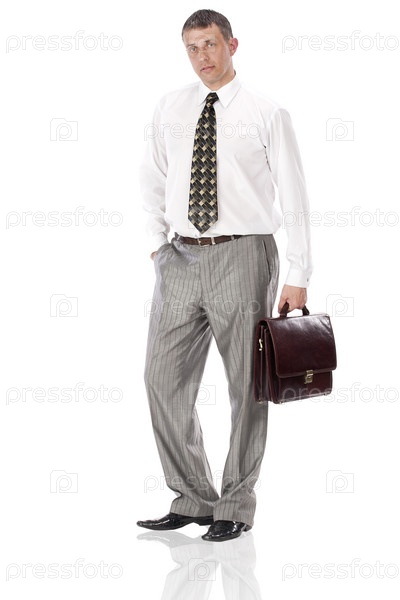 Элегантный бизнесмен с портфелем на белом фоне
